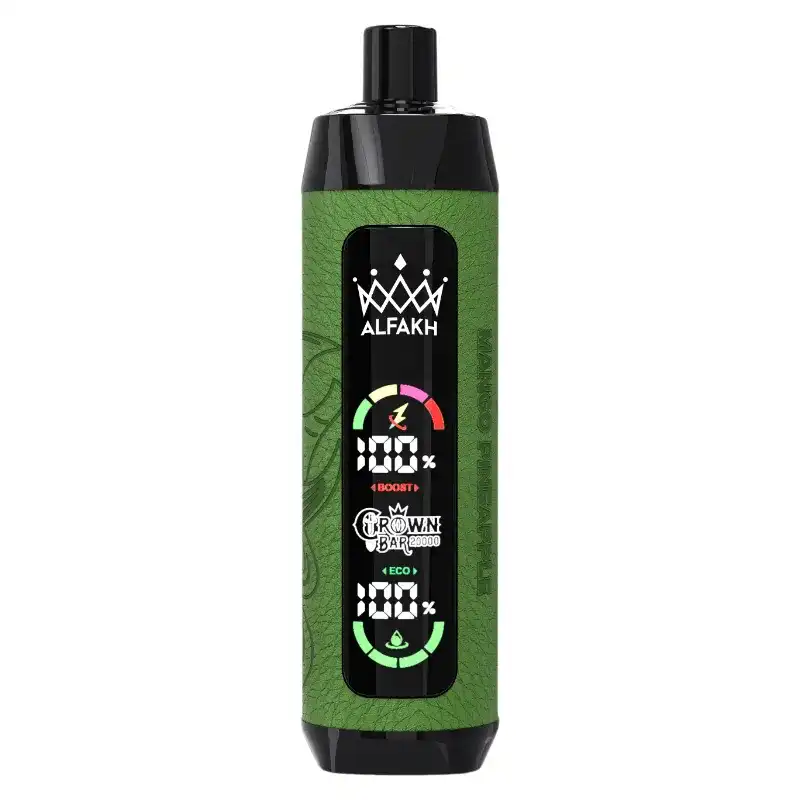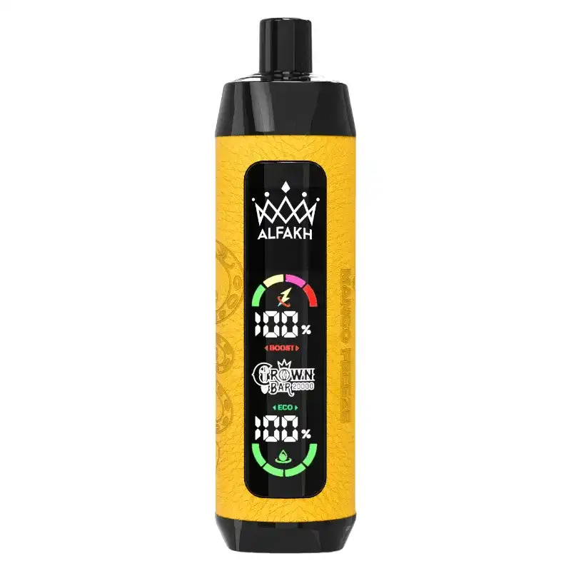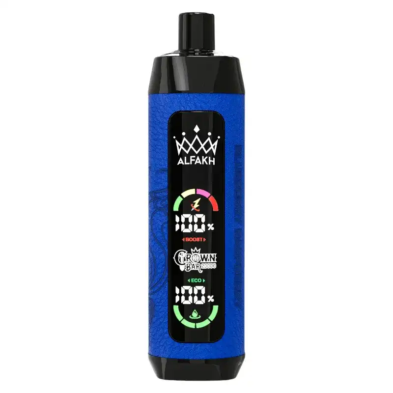 The Al Fakher Crown Bar 20K (20000) Puffs Disposable Vape is designed for vapers seeking maximum power, extended usage, and flavor intensity. With up to 20000 puffs and 30ML of e-liquid, it provides long-lasting performance. The 1 ohmmesh coil enhances both flavor and vapor production, the LCD screen makes it easy to monitor both battery life and remaining e-juice. The leather wrap adds a touch of elegance, ensuring a premium feel and look.