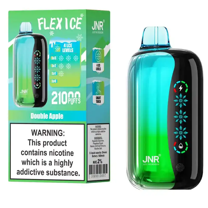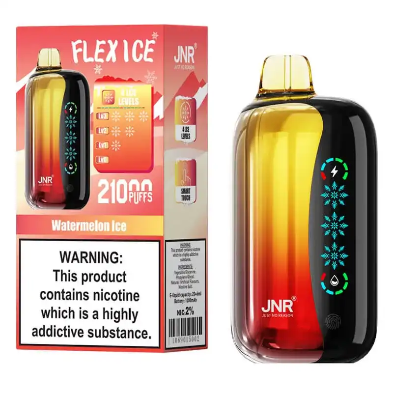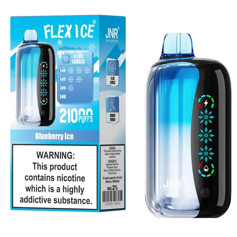 The JNR Flex Ice 21K (21000) Puffs Disposable Vape stands out as a top choice for vapers seeking long-lasting use and exceptional flavor. Its touchscreen makes vaping simple, while the adjustable ice control lets you choose how cool each puff feels.