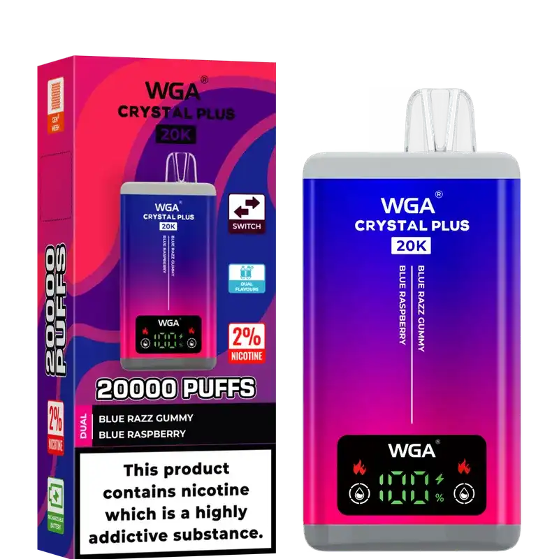 Whether you prefer the refreshing burst of blue razz cherry or the sweet delight of peach apple, the WGA Crystal Plus 20k (20000) Puffs Disposable Vape has something for everyone.