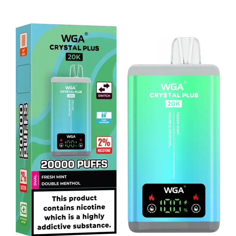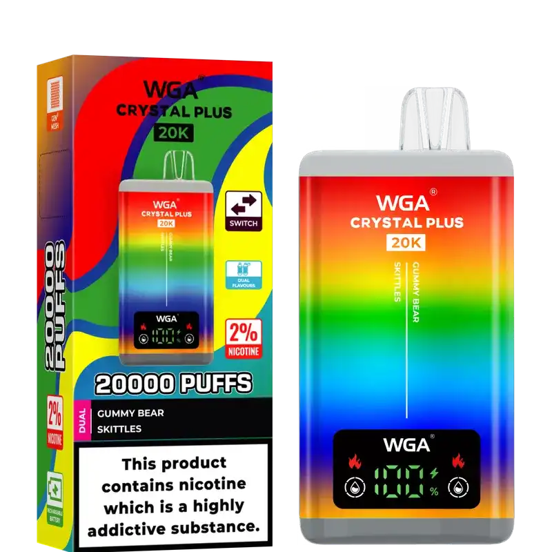 Elevate your vaping experience with the WGA Crystal Plus 20k (20000) Puffs Disposable Vape—where dual flavors and cutting-edge technology meet.
